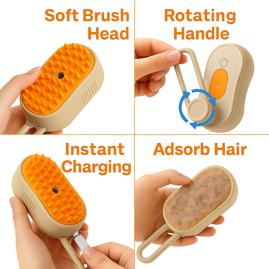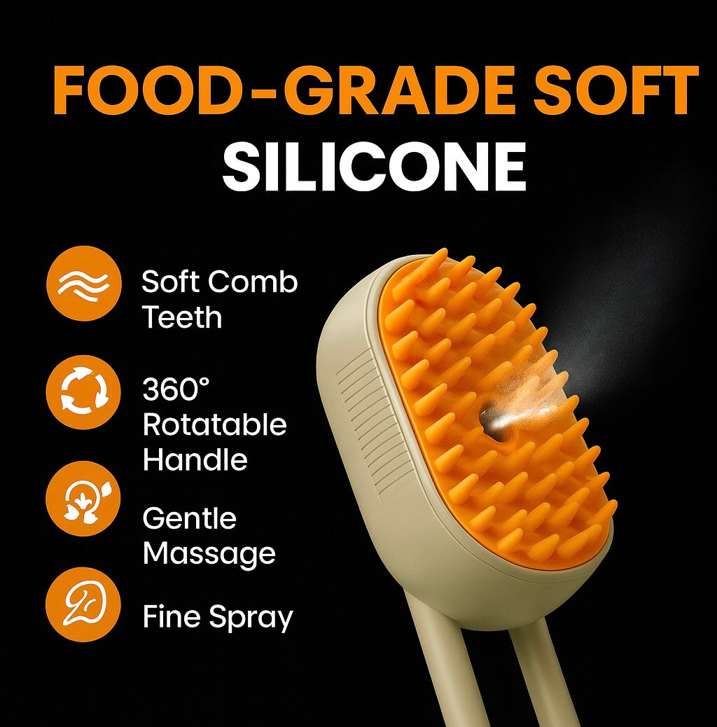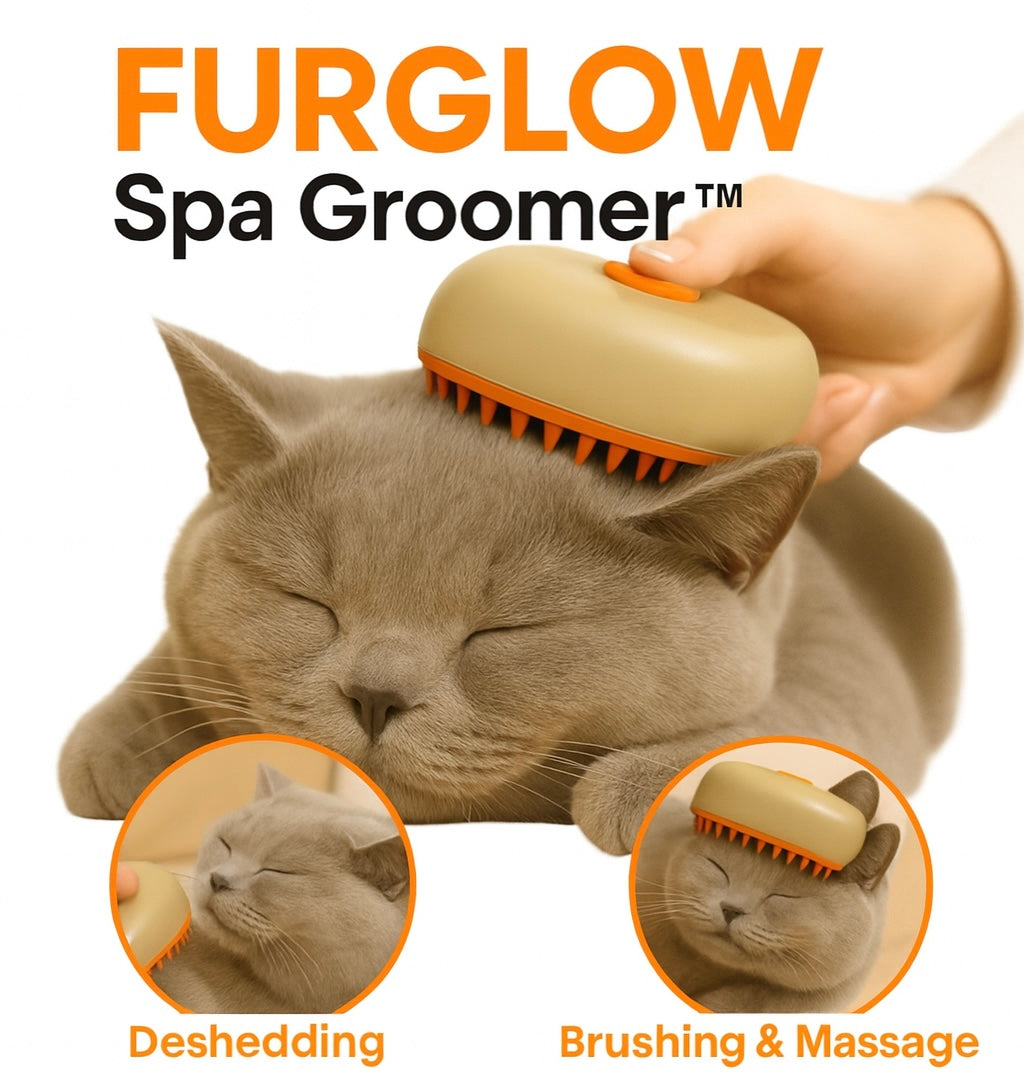 The FURGLOW Spa Groomer™ is an innovative 3-in-1 grooming tool designed to brush, steam-clean, and massage your pet. It combines the functions of a de-shedding brush with gentle steam technology to effectively remove loose fur, clean the coat, and hydrate the skin, turning grooming into a relaxing, spa-like experience.